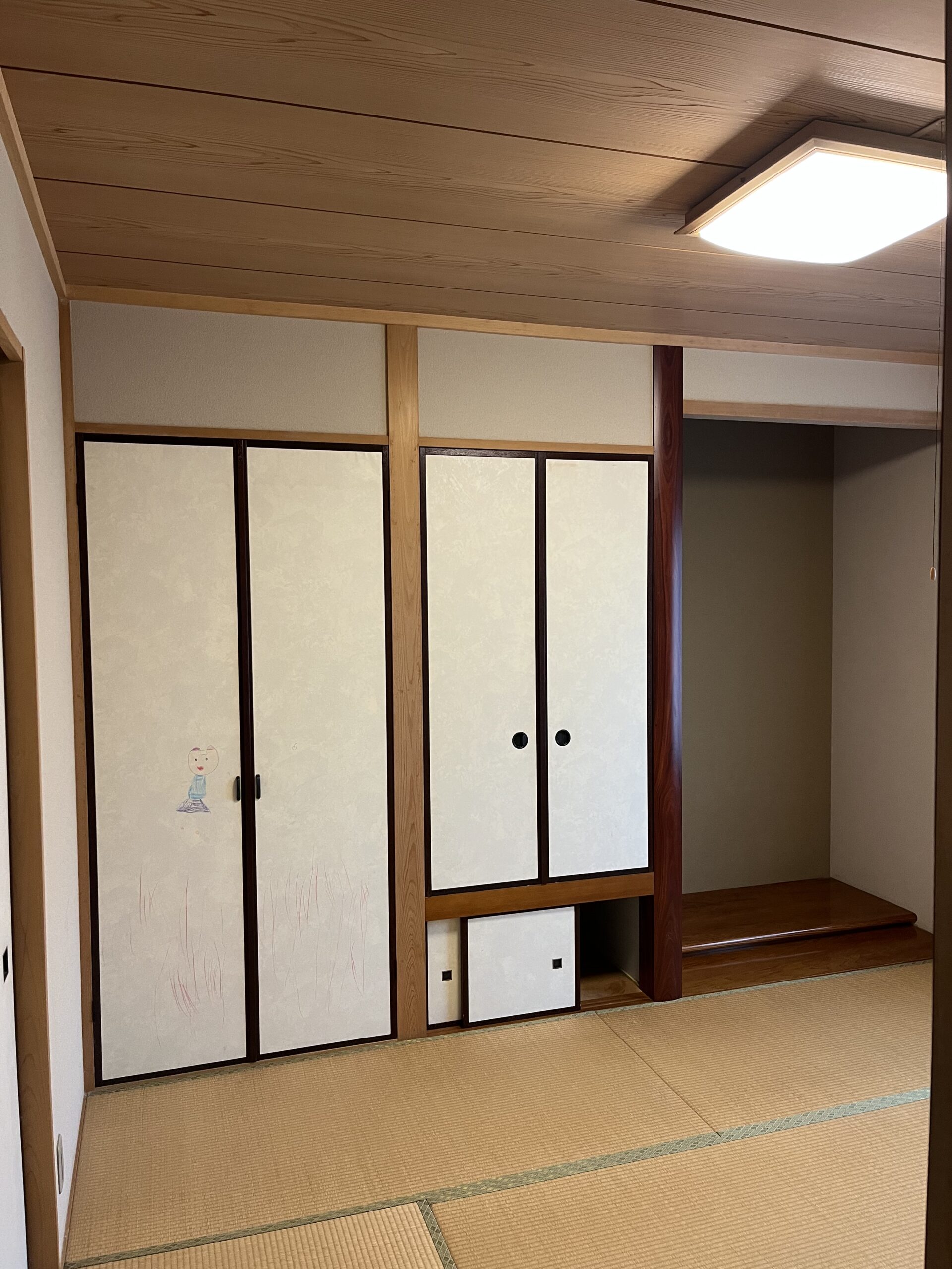 これまで和室だったお部屋を洋室へ改修したいとのご依頼を頂きました。 畳6畳と床の間、仏間、押し入れを解体して8帖の洋間へと改修いたしました。