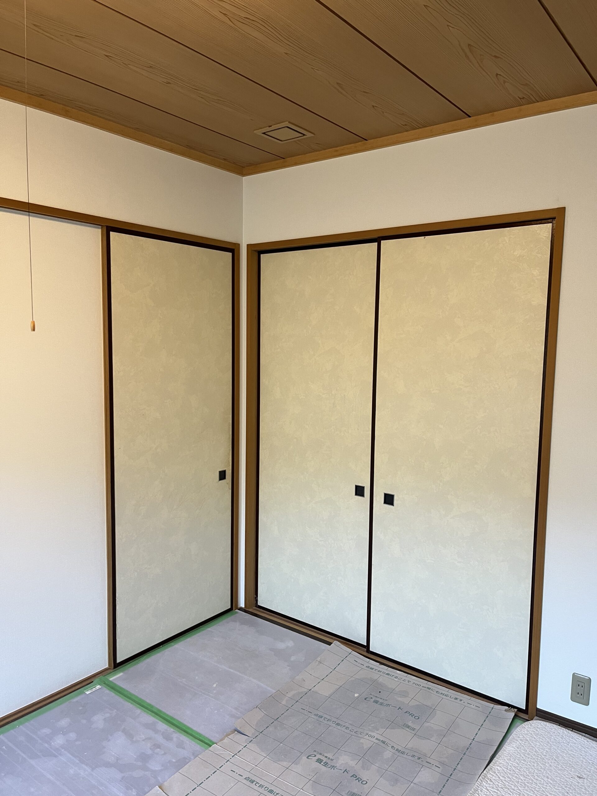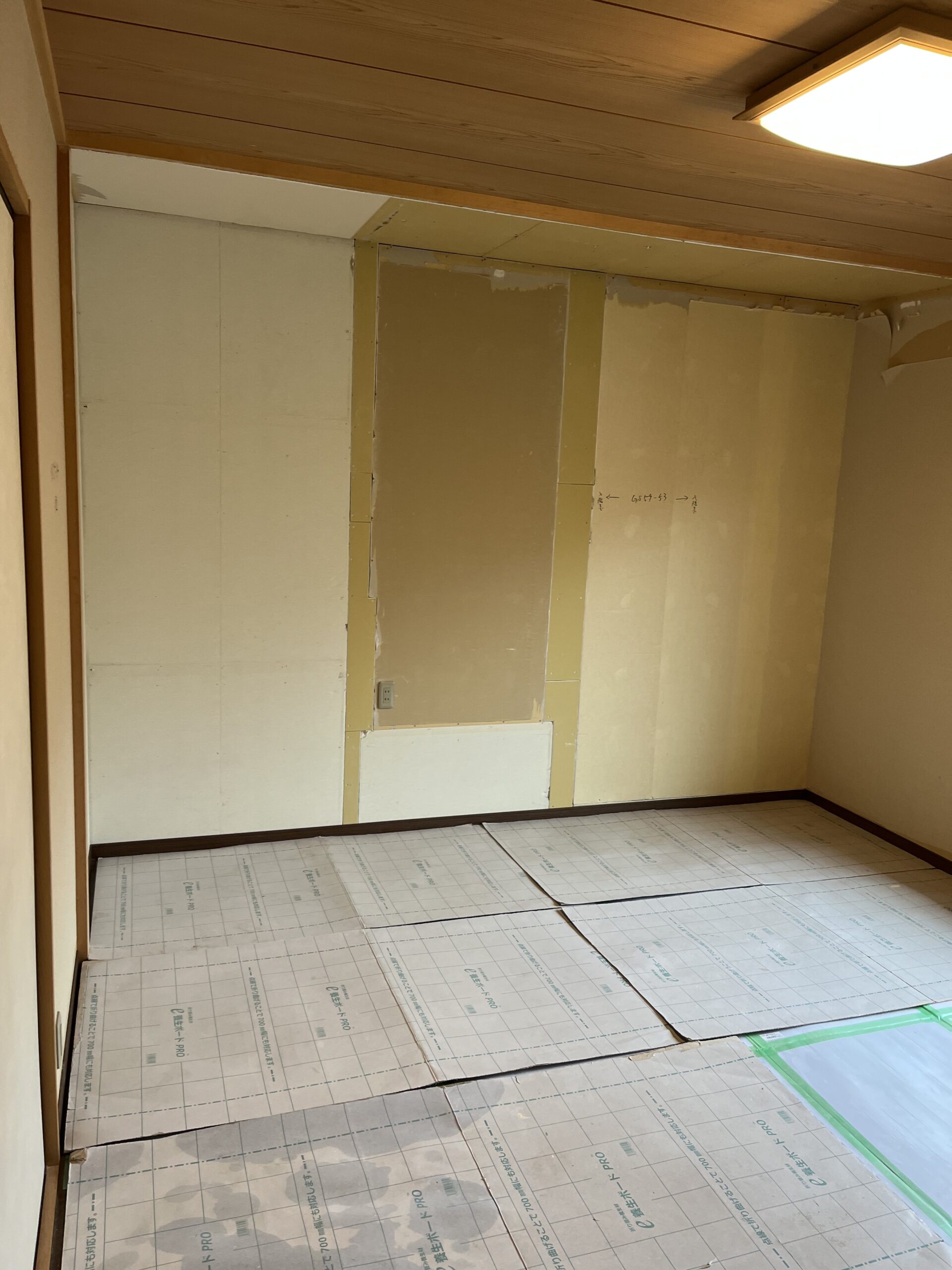 既存の畳と、フロアを剥いで新たにフローリングを貼りました。 壁紙も貼り替えし、洋室へと一新致しました。