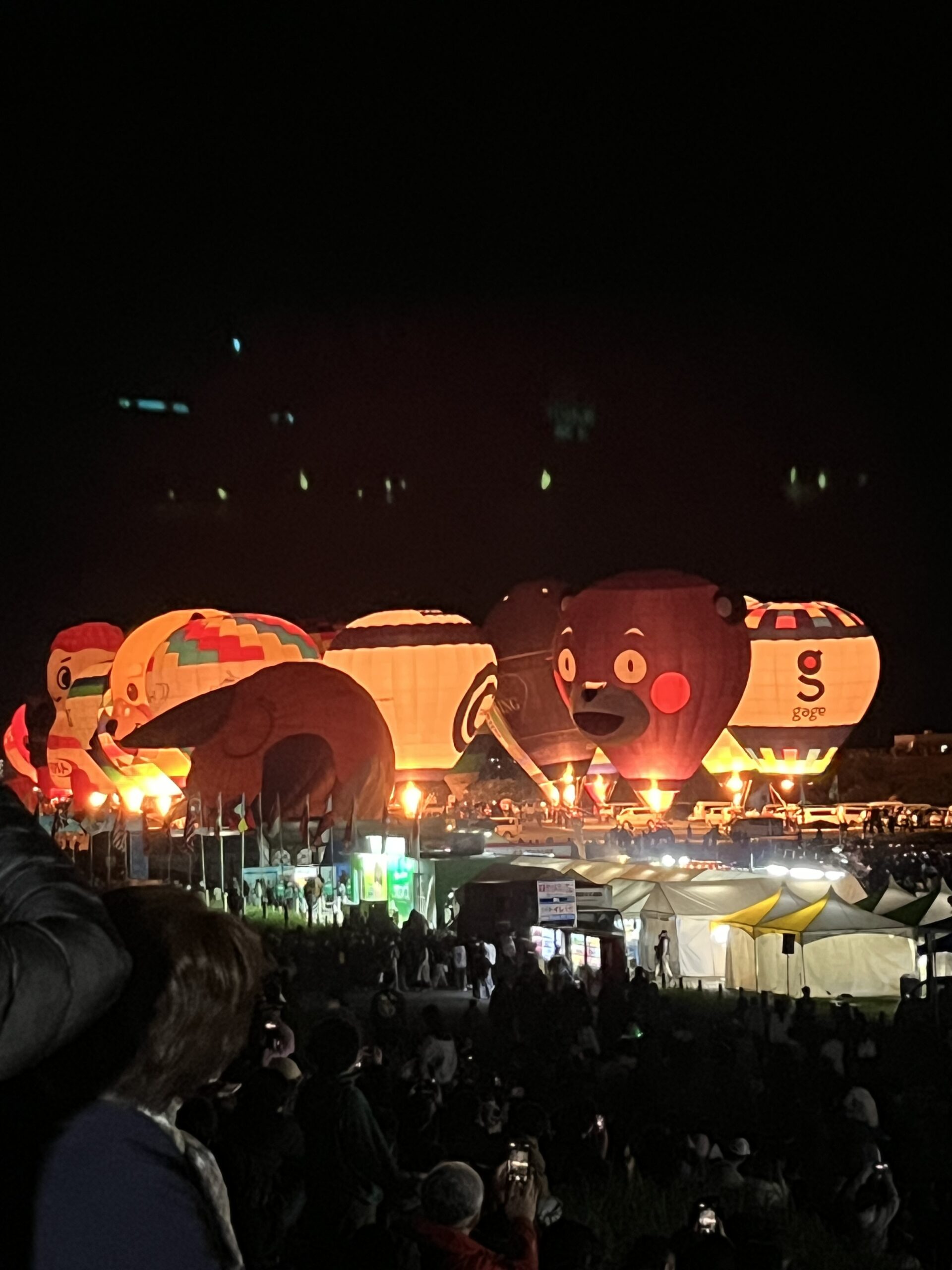 日が暮れ始めた頃からバルーンの夜間係留が始まり、色とりどりのバルーンがとても綺麗でした🤩