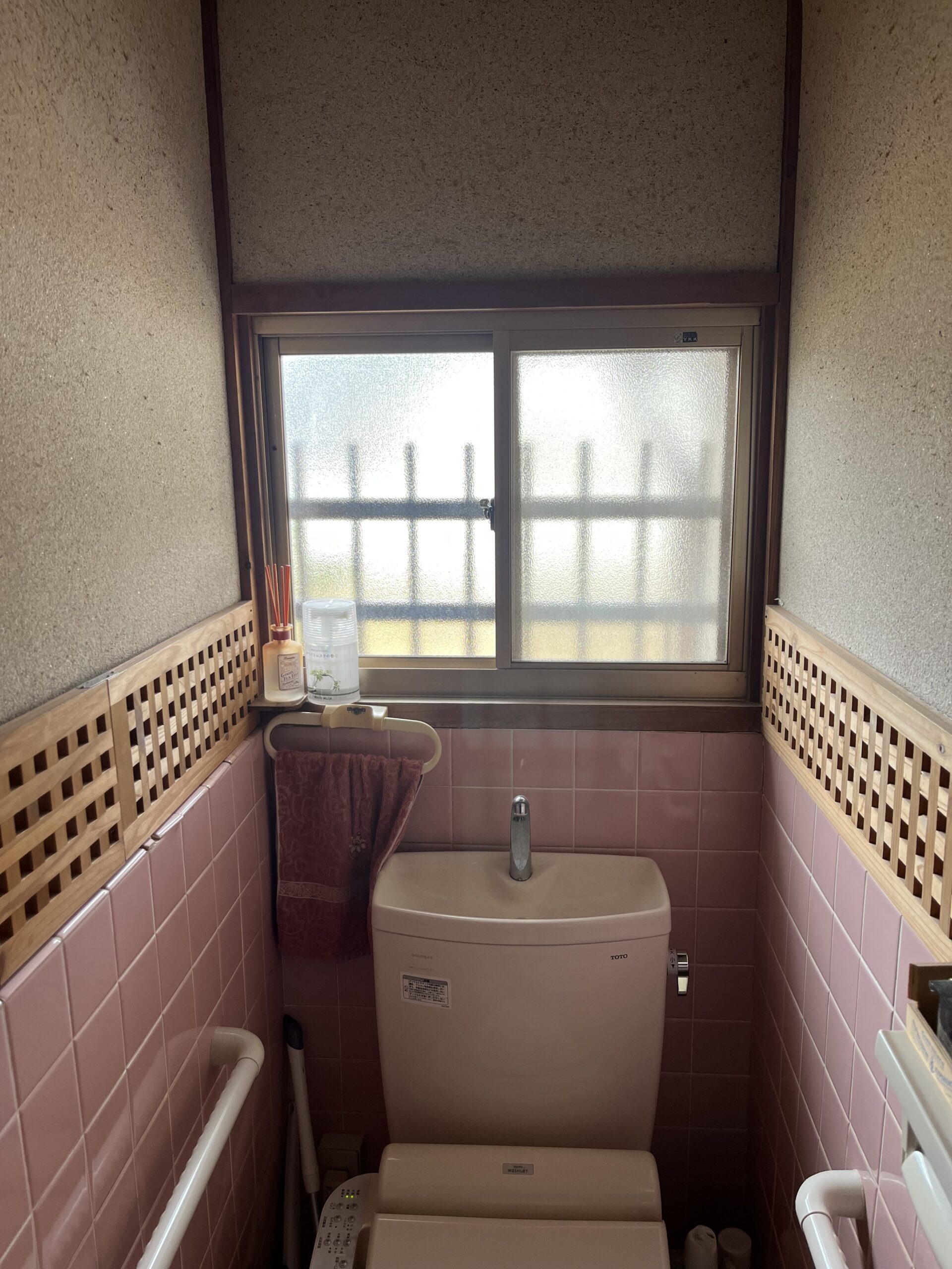今回は浴室の改修工事と同時進行だったので、国の補助金を申請するために必須工事である断熱工事はトイレの内窓設置を選択いたしました。 トイレと脱衣所の壁は元の土壁の上にベニヤを貼りクロスで仕上げました。